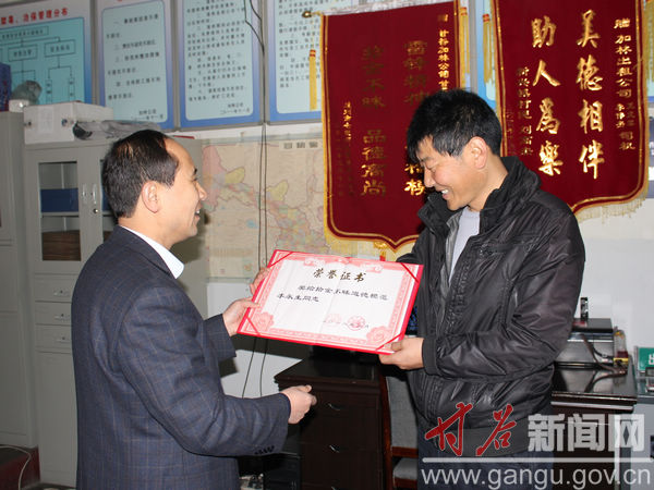 3月21日下午,甘谷縣委書記賈忠慧,縣人大常委會主任衡彬,縣委副書記、縣長申君明,縣政協(xié)主席王璽卿,縣委常委、統(tǒng)戰(zhàn)部長馬驥,縣委常委、宣傳部長董珺,副縣長潘慧琴一行到加林出租車公司看望慰問拾金不昧好的哥李永生,送去了5000元的慰問金并授予他拾金不昧道德模范榮譽(yù)稱號。