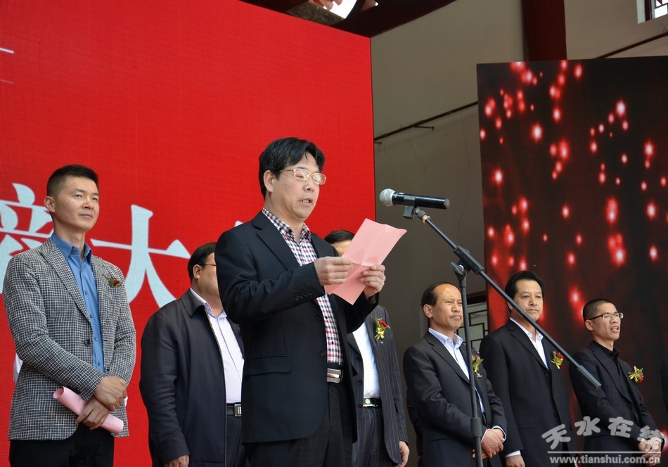申君明在講話中代表縣四大組織和全縣63萬人民向蒞臨大會的各位來賓、各位客商表示熱烈的歡迎和衷心的感謝,他說,甘谷歷史悠久,交通便利,區(qū)位優(yōu)勢明顯,自古以來就是絲綢之路上的商旅重鎮(zhèn),宋有“茶馬大市”盛名,明享“商旅之家”美譽。近年來,縣委、縣政府搶抓國家實施新一輪西部大開發(fā)、建設絲綢之路經濟帶的重大機遇,充分發(fā)揮區(qū)位優(yōu)勢和產業(yè)優(yōu)勢,以建設隴東南商貿大縣為目標,積極實施商貿活縣戰(zhàn)略,傾力打造投資平臺,著力擴大對外開放,廣泛開展招商引資,成功引進了一大批知名企業(yè)和重大項目,實現了縣域經濟和外商企業(yè)互利互贏,促進了全縣商貿業(yè)的進一步繁榮發(fā)展。