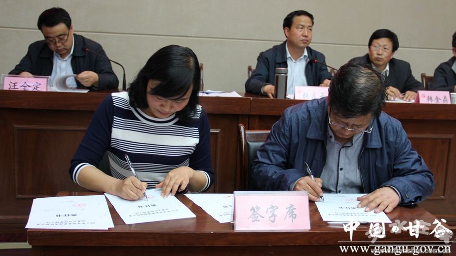 。ǜ笨h長潘慧琴與各考點(diǎn)簽訂《目標(biāo)管理責(zé)任書》)