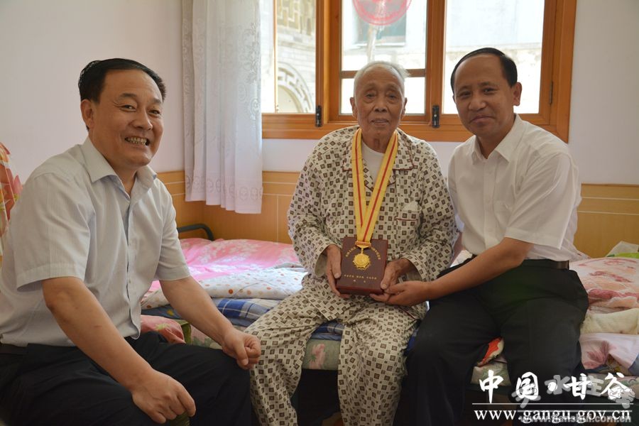 為紀(jì)念中國人民抗日戰(zhàn)爭暨世界反法西斯戰(zhàn)爭勝利70周年, 9月1日,天水市委組織部副部長、市人社局局長郭明興,市老干局副局長石軍一行在甘谷縣委書記賈忠慧,縣委常委、宣傳部長張慶元陪同下,深入甘谷縣抗戰(zhàn)老兵李世生、王善榮、鄭文才家中走訪慰問,為他們頒發(fā)中國人民抗日戰(zhàn)爭勝利70周年紀(jì)念章,并送上了慰問金。