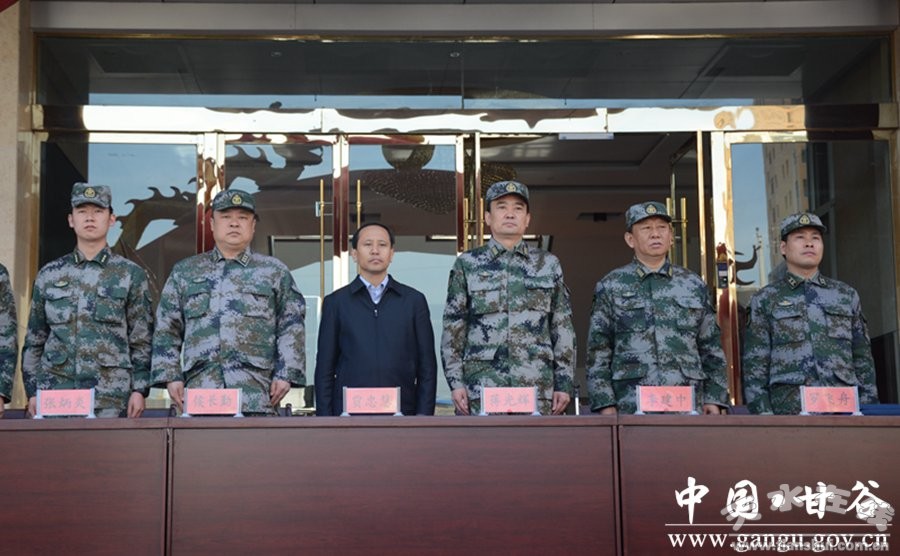 4月18日,甘谷縣民兵應(yīng)急連組織整頓點(diǎn)驗(yàn)大會(huì)在縣人武部召開,甘肅省軍區(qū)后勤部副部長蔣光輝,天水市委常委、天水軍分區(qū)司令員李建中,縣委書記賈忠慧,縣委常委、人武部部長田暉等領(lǐng)導(dǎo)出席大會(huì)。