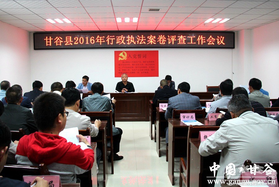 6月2日,甘谷縣召開2016年行政執(zhí)法案卷評(píng)查工作會(huì)議?h法制辦負(fù)責(zé)人就全縣行政執(zhí)法案卷評(píng)查工作從參評(píng)單位、參評(píng)案卷、評(píng)查內(nèi)容和標(biāo)準(zhǔn)、評(píng)查時(shí)間及方法步驟等方面進(jìn)行了安排部署。全縣行政執(zhí)法單位有關(guān)負(fù)責(zé)人參加會(huì)議。