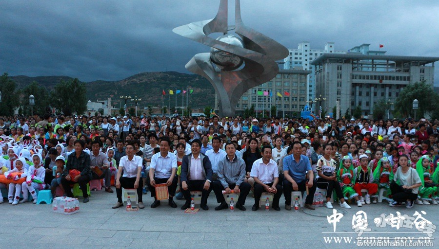 7月7日晚,伴隨著動感的音樂和孩子們歡快的舞蹈,甘谷縣信合杯“兩學一做”教育系統(tǒng)專場文藝晚會在冀城廣場精彩上演。縣人大常委會主任令建民,縣委常委、組織部長馮建新,縣委常委、宣傳部長張慶元,副縣長牛武軍、汪曉娟和教育系統(tǒng)廣大師生及干部群眾2000多人一同觀看演出。