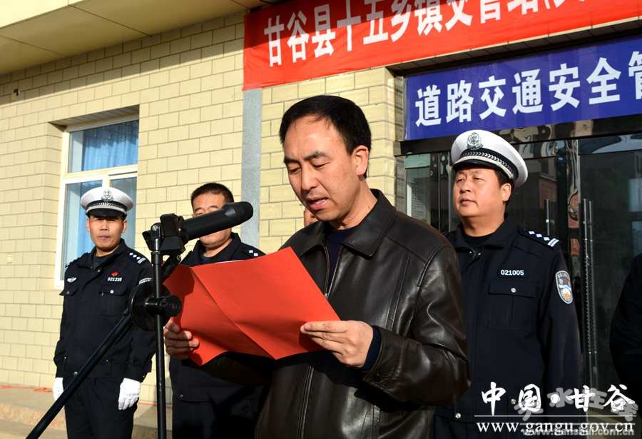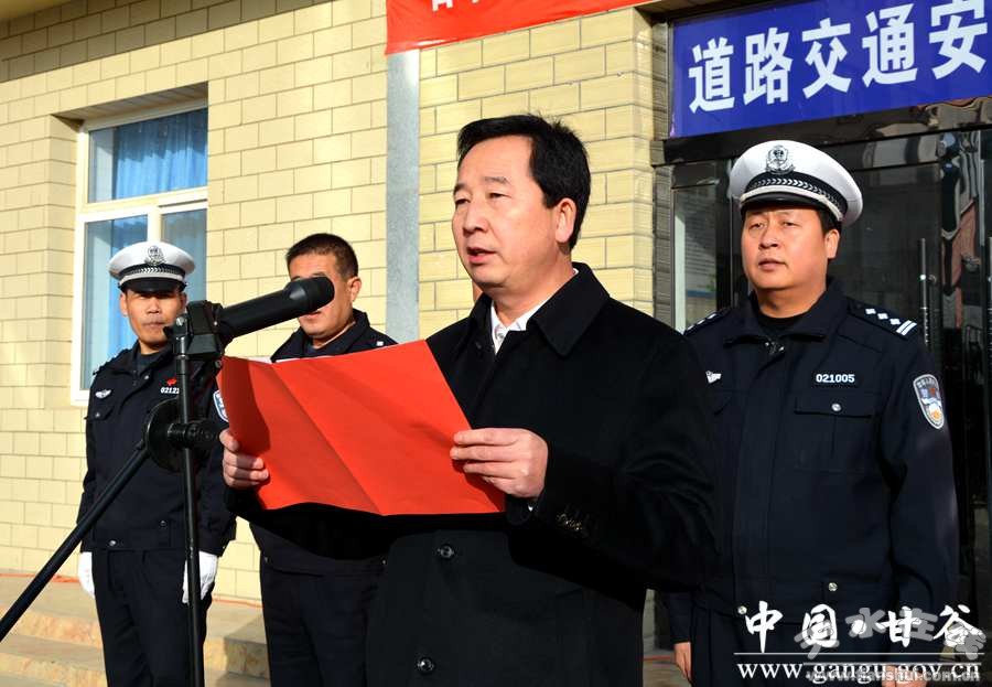 12月6日,甘谷縣15個鄉(xiāng)鎮(zhèn)交管站(交警中隊)成立揭牌儀式在新興鎮(zhèn)舉行,標志著全縣15個鄉(xiāng)鎮(zhèn)交管站(交警中隊)正式成立。市交警支隊副支隊長許維正,縣委常委、常務副縣長孟曉龍,縣委常委、政法委書記馮全敬出席揭牌儀式;縣公安局、交通局、安監(jiān)局、運管局、交警大隊負責人及各鄉(xiāng)鎮(zhèn)交管站站長、交警中隊隊長參加儀式。