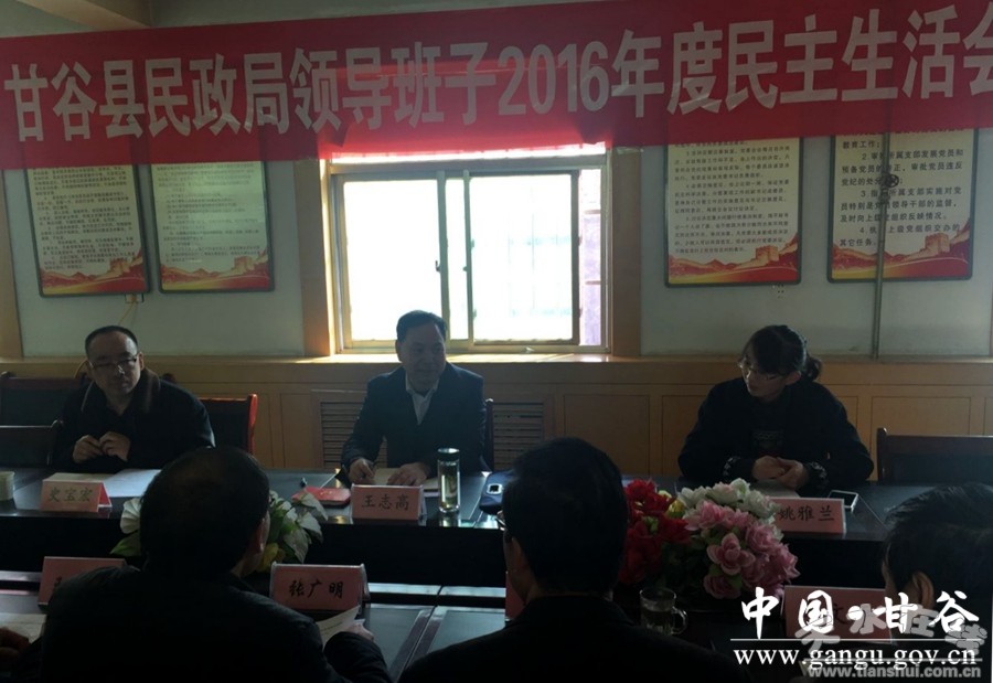 2月15日,甘谷縣民政局召開2016年度領(lǐng)導(dǎo)班子民主生活會(huì)?h委常委、副縣長王志高出席指導(dǎo)會(huì)議;縣紀(jì)委、縣委組織部有關(guān)負(fù)責(zé)人應(yīng)邀列席會(huì)議;民政局領(lǐng)導(dǎo)班子全體成員參加會(huì)議。