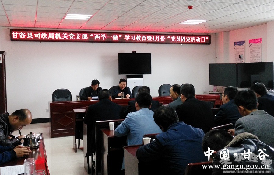 縣司法局機關(guān)黨支部集中學習了《習近平總書記系列重要講話讀本》部分章節(jié),通報了黨支部公開承諾踐諾情況;全體黨員向黨支部匯報了黨員個人公開承諾踐諾情況,并接受評議。并結(jié)合“法治甘谷建設(shè)”主題,安排部署了利用鄉(xiāng)鎮(zhèn)趕集日、廟會等重要節(jié)點開展法治宣傳教育和法律服務(wù)工作。要求全體黨員把習近平總書記系列重要講話學精學深學細,不忘初心,牢記公仆意識;將落實“法治甘谷建設(shè)”活動主題作為踐行習近平總書記關(guān)于讓老百姓過上好日子重要講話精神的重要舉措,積極謀劃組織開展“法律八進”活動,宣傳國家法律法規(guī)知識,為群眾提供矛盾糾紛調(diào)解、法律咨詢、法律援助等服務(wù)。
