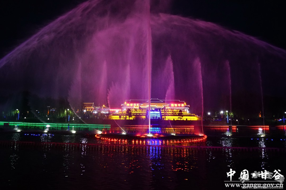湖中的噴泉騰空而起,或如利劍,或如彎刀;或如俊男,或如靚女。在彩燈的映照下,伴隨著美妙的音樂翩翩起舞,那變化多端的姿態(tài),那強弱快慢的節(jié)奏,那絢麗多彩的燈光,令人耳聽心受,目不暇接。