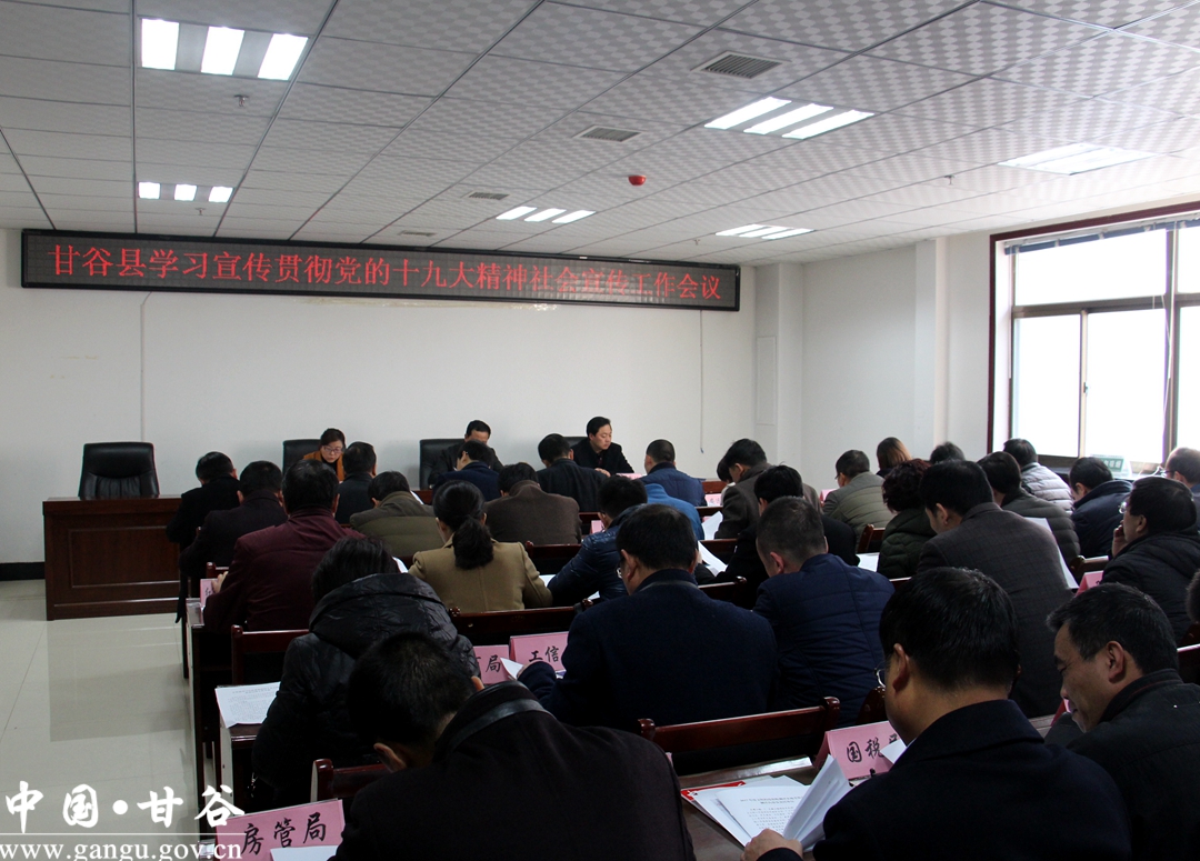 11月27日,甘谷縣召開學(xué)習(xí)宣傳貫徹黨的十九大精神社會宣傳工作會議,縣委常委、宣傳部長張慶元出席會議并講話?h直相關(guān)部門和鄉(xiāng)鎮(zhèn)負(fù)責(zé)人共計50多人參加會議。