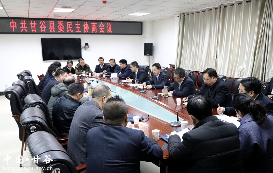 12月28日,甘谷縣召開政黨協(xié)商會(huì)議?h委常委、組織部長(zhǎng)馮建新,縣委常委、統(tǒng)戰(zhàn)部長(zhǎng)王剛,縣政協(xié)副主席陳旭、馬清平出席會(huì)議?h級(jí)各民主黨派、縣工商聯(lián)等部門有關(guān)負(fù)責(zé)人,黨外人士代表參加會(huì)議。