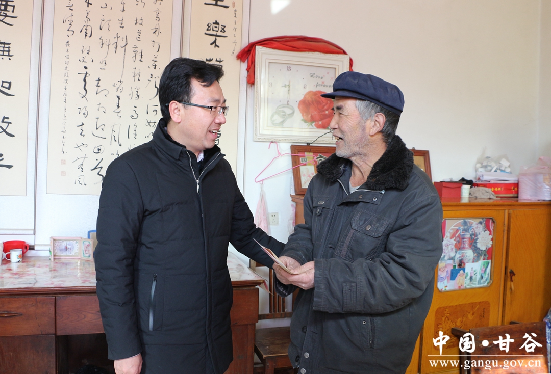 2月8日,甘谷縣委副書記宋學勤、縣人大常委會副主任王金生深入磐安鎮(zhèn)看望慰問老黨員、重點優(yōu)撫對象、農(nóng)村特困供養(yǎng)人員、低保戶、殘疾人和高齡老人,為他們送去慰問金,并向他們致以新春的問候和良好的祝愿。