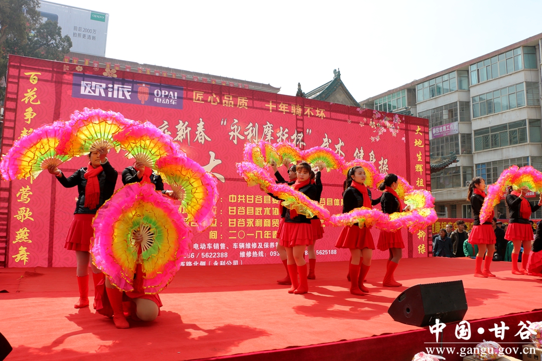 2月28日,由甘谷縣委宣傳部,縣體育發(fā)展中心主辦,縣武術(shù)協(xié)會(huì)承辦的2018年慶新春“永利摩托杯”武術(shù)健身操匯演活動(dòng)在大什字廣場(chǎng)火熱上演,來(lái)自全縣精選的8支健身隊(duì)和112名武術(shù)隊(duì)員歡聚一堂,以活力四射的舞蹈、精湛武術(shù)技藝,在春節(jié)期間為市民們獻(xiàn)上一場(chǎng)喜慶的武術(shù)健身 “大餐”。