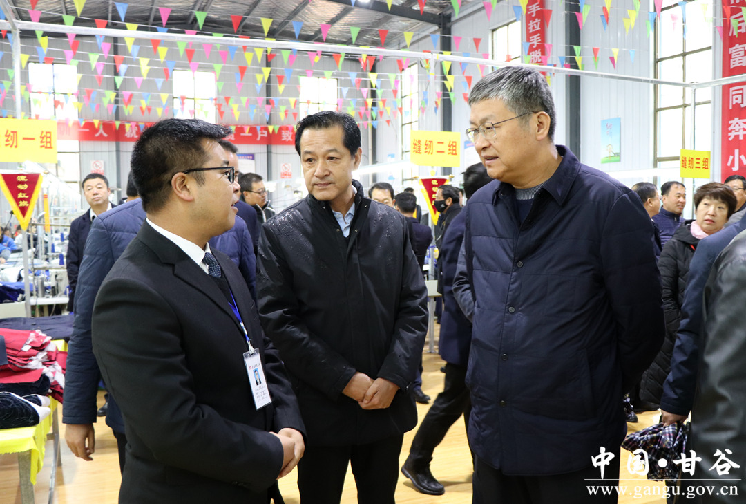 11月15日,全省“扶貧車間”建設(shè)暨就業(yè)扶貧現(xiàn)場(chǎng)會(huì)代表來甘谷縣觀摩。市委副書記趙衛(wèi)東,副市長逯克宗,市政府副秘書長張有信、邵宏偉;縣委書記申君明,縣委副書記、縣長吳健,縣委常委、政法委書記馮全敬,副縣長楊宏一同觀摩。