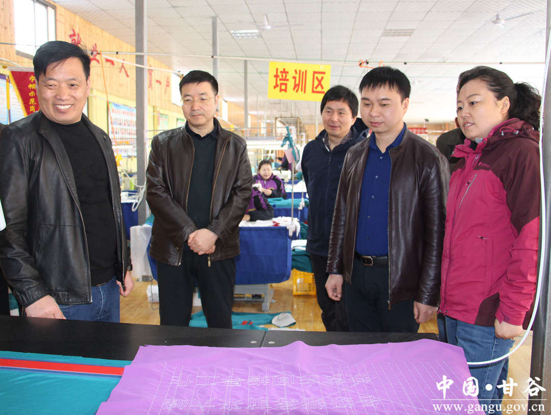 3月21日,中車集團3家子公司相關(guān)負(fù)責(zé)人來甘谷縣考察扶貧車間生產(chǎn)情況,并簽訂工服訂單協(xié)議。副縣長李蘭平陪同。