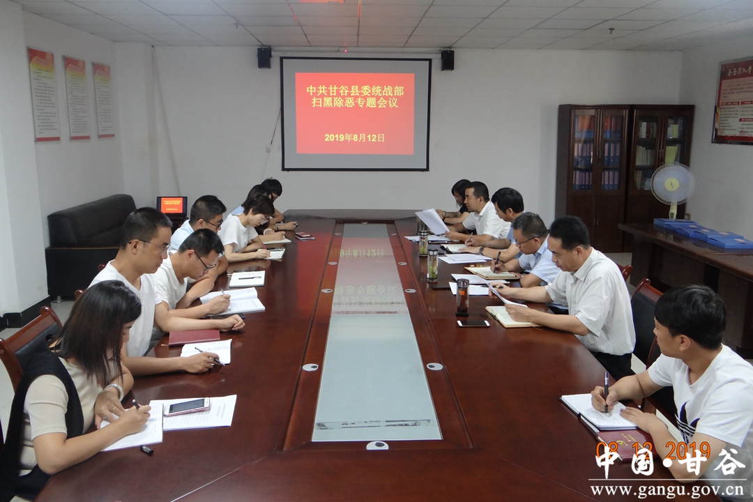 8月12日,甘谷縣委統(tǒng)戰(zhàn)部召開掃黑除惡專項斗爭專題學習會,進一步推進掃黑除惡專項斗爭向縱深發(fā)展?h委常委、統(tǒng)戰(zhàn)部長王剛出席會議;統(tǒng)戰(zhàn)系統(tǒng)全體黨員干部參加會議。