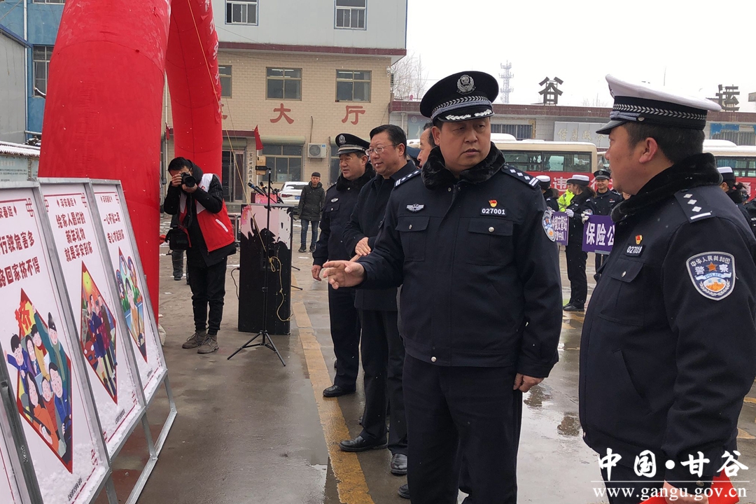 1月10日,甘谷縣2020年春運(yùn)啟動(dòng)儀式在城區(qū)客運(yùn)汽車(chē)站舉行,縣人大常委會(huì)副主任薛希武,副縣長(zhǎng)、縣公安局黨委書(shū)記、局長(zhǎng)許維正,縣政協(xié)副主席陳旭出席啟動(dòng)儀式;縣公安局、運(yùn)管局、交警大隊(duì)、新興高速交警大隊(duì)、公路段、汽車(chē)站、運(yùn)輸企業(yè)等相關(guān)單位負(fù)責(zé)人及部分春運(yùn)工作人員、駕駛員代表共計(jì)200多人參加儀式。