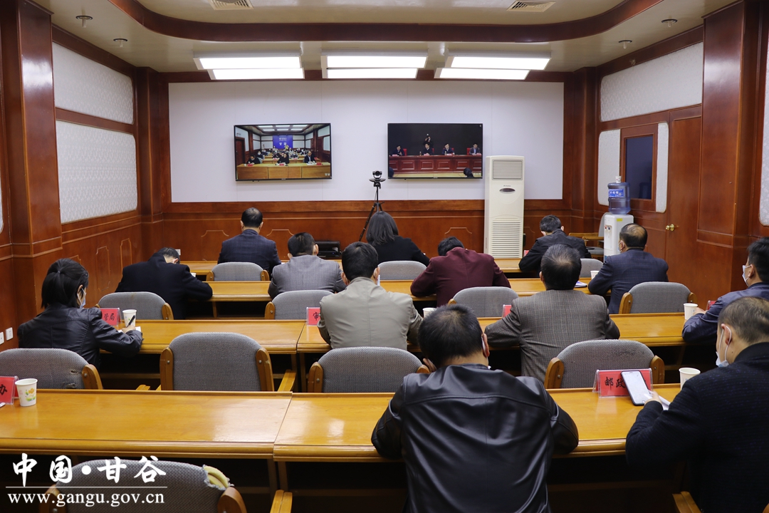 副縣長高麗及相關(guān)部門負(fù)責(zé)人在甘谷分會場收聽收看會議。