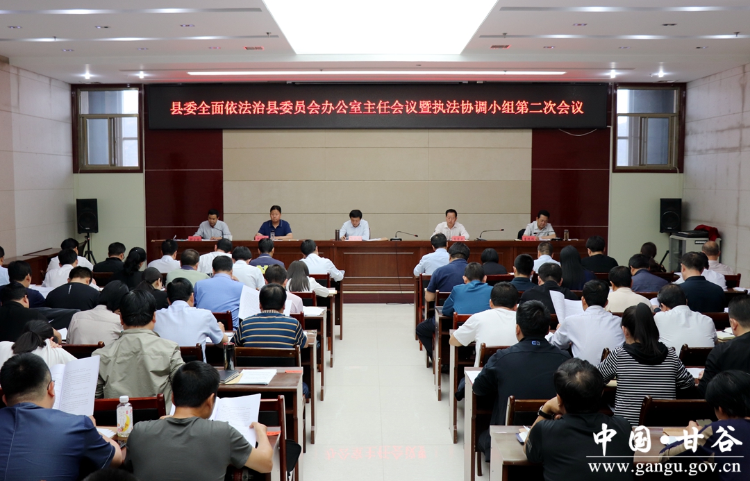 5月22日,甘谷縣委全面依法治縣委員會(huì)辦公室主任會(huì)議暨縣委全面依法治縣委員會(huì)執(zhí)法協(xié)調(diào)小組第二次會(huì)議召開,傳達(dá)中央依法治國辦對(duì)甘肅省法治政府建設(shè)實(shí)地督察的反饋意見等文件精神,審議甘谷縣《中央督察反饋問題整改方案》(審議稿),表彰甘谷縣2019年依法治縣先進(jìn)集體,研究部署甘谷縣中央依法治國辦法治政府建設(shè)實(shí)地督察反饋問題整改工作和法治政府建設(shè)相關(guān)工作。