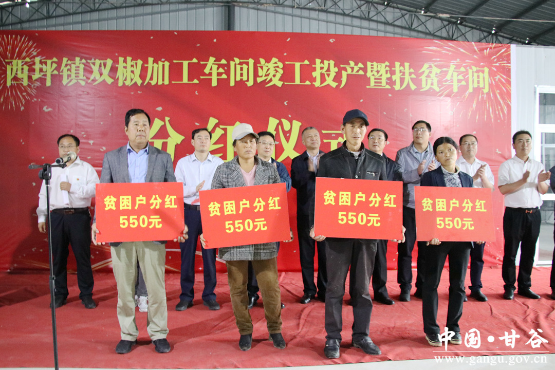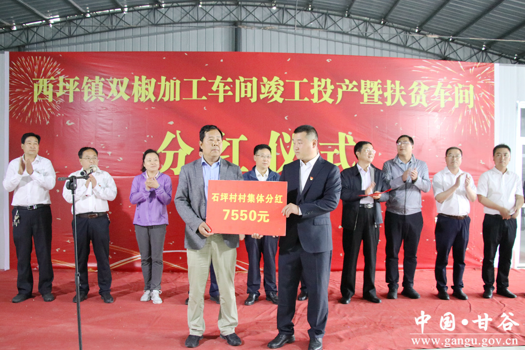 6月11日,中車蘭州公司總經(jīng)理周顏忠一行深入甘谷縣開展產(chǎn)業(yè)扶貧,并與副縣長杜興、李蘭平共同見證了西坪鎮(zhèn)扶貧車間的分紅儀式。