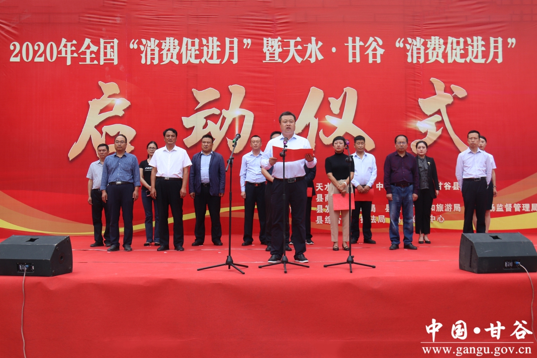 9月9日,2020年全國(guó)“消費(fèi)促進(jìn)月”暨天水·甘谷“消費(fèi)促進(jìn)月”啟動(dòng)儀式在水上公園舉行。這是全面落實(shí)“六穩(wěn)”“六!惫ぷ魅蝿(wù)的重要舉措,也是持續(xù)開(kāi)展促銷費(fèi)活動(dòng)、營(yíng)造消費(fèi)氛圍、打造消費(fèi)新熱點(diǎn)的具體行動(dòng)。