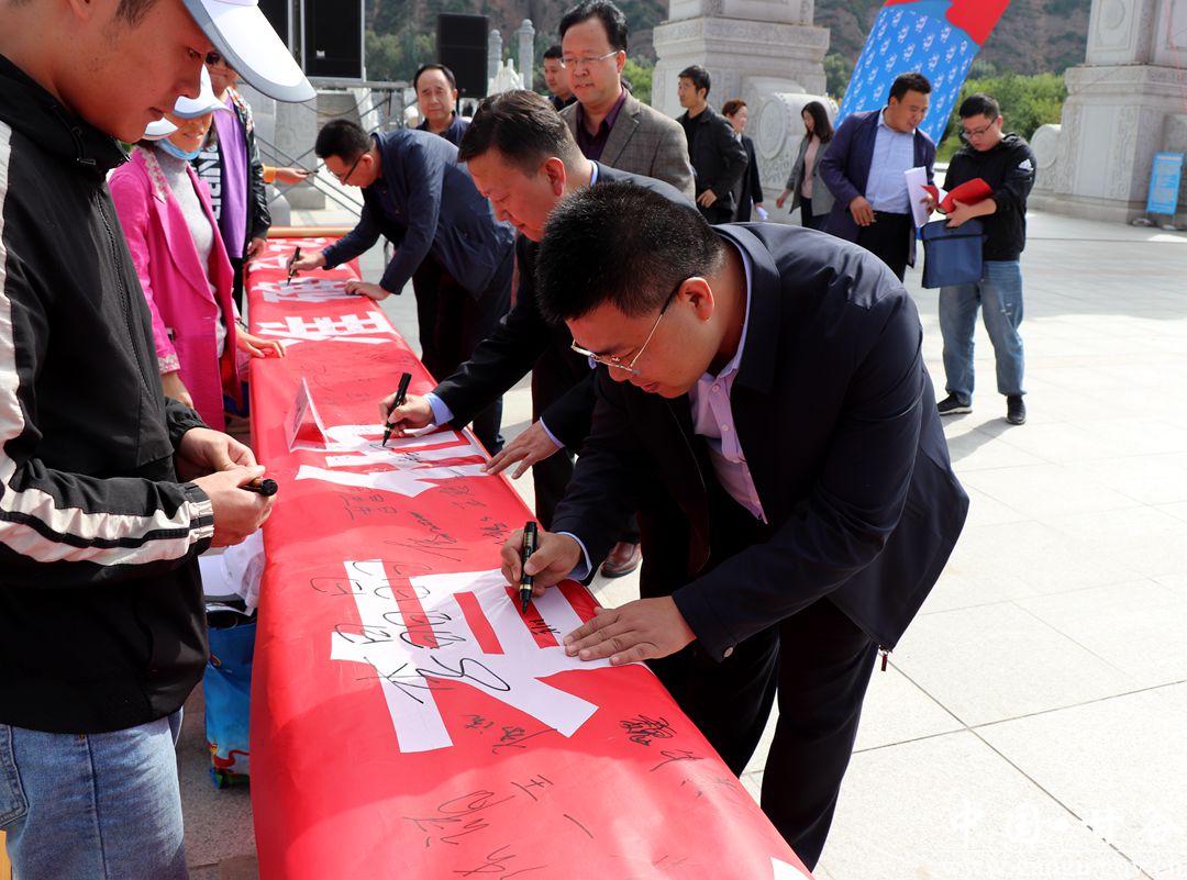 儀式結束后,與會人員共同簽名為全國人口普查助力,并參觀了宣傳展板。