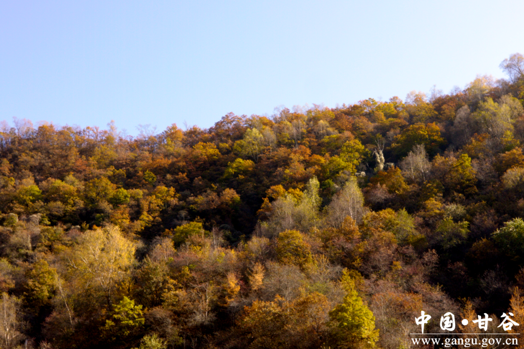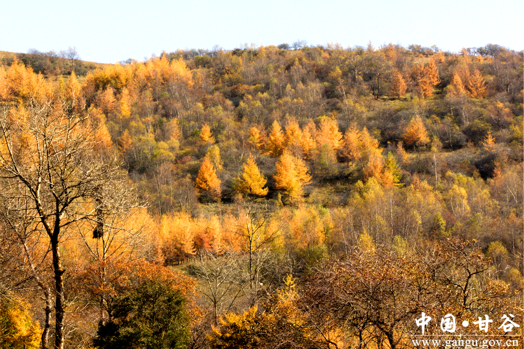 朝古坡草原一路走去,路兩旁的各種千姿百態(tài)的古木奇樹(shù)映入眼簾,令人目不暇接。落葉松的針葉下緣是稍黃的,油松則是一片蒼綠,楊樹(shù)一片火紅,彩蝶飛舞般的落葉樹(shù),山上的草甸一片紅褐……勾勒出一幅幅漂亮的山水畫(huà)。