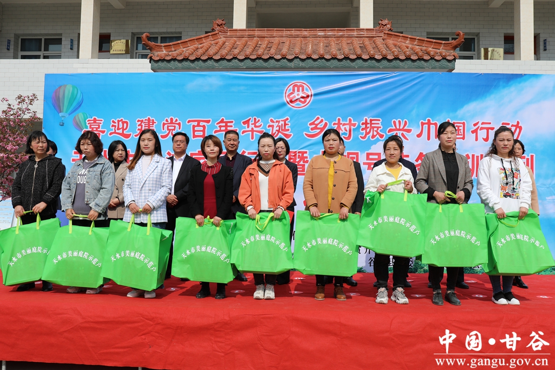 市婦聯(lián)黨組書記、主席肖江講話并宣布天水市巾幗共建美麗家園清潔行動(dòng)正式啟動(dòng),天水市巾幗號(hào)勞務(wù)培訓(xùn)專列發(fā)車;縣委副書記舒時(shí)光致辭;市婦聯(lián)副主席李萍宣讀表彰決定;副縣長(zhǎng)范慧主持啟動(dòng)儀式;新興鎮(zhèn)牛坪村黨支部書記、婦聯(lián)主席張慧芳發(fā)言;儀式上還為市級(jí)美麗庭院示范村新興鎮(zhèn)蔡家寺村、六峰鎮(zhèn)金坪村頒發(fā)了獎(jiǎng)牌及獎(jiǎng)金,為市級(jí)美麗庭院示范戶代表發(fā)放了大禮包。