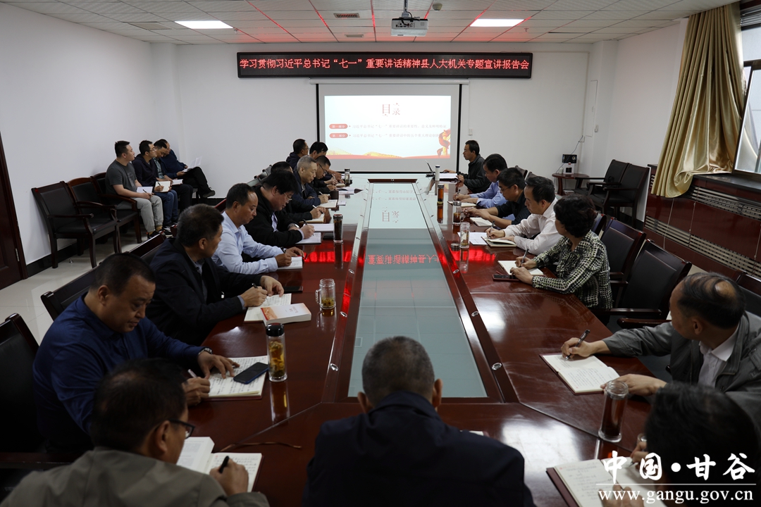 9月14日,甘谷縣人大常委會(huì)機(jī)關(guān)舉行學(xué)習(xí)貫徹習(xí)近平總書記“七一”重要講話精神專題宣講報(bào)告會(huì)。縣人大常委會(huì)副主任頡明軍、楊曉濤、張世誠(chéng)出席報(bào)告會(huì)。縣人大常委會(huì)副主任薛希武主持報(bào)告會(huì)。