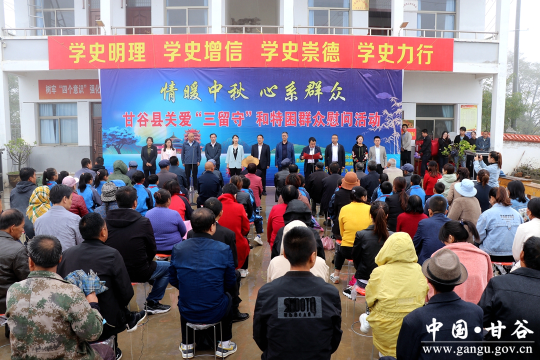 為了深入貫徹黨中央、國(guó)務(wù)院關(guān)于鞏固脫貧攻堅(jiān)成果同鄉(xiāng)村振興有效銜接的決策部署,根據(jù)省市縣關(guān)于開展農(nóng)村留守老人、婦女兒童和特困群眾關(guān)愛服務(wù)行動(dòng)的精神,近日,甘谷縣“情暖中秋 心系群眾”關(guān)愛“三留守”和特困群眾慰問活動(dòng)在八里灣鎮(zhèn)八里灣村舉行。縣委常委、宣傳部部長(zhǎng)王亞梅出席活動(dòng)并致辭;副縣長(zhǎng)杜興出席活動(dòng)并講話;縣人大常委會(huì)副主任王新民,縣政協(xié)副主席馬清平、蔣文出席慰問活動(dòng)。縣婦聯(lián)、縣紅十字會(huì)代表、甘谷冀城家政培訓(xùn)學(xué)校負(fù)責(zé)人,八里灣鎮(zhèn)全體在家領(lǐng)導(dǎo)、留守老人、婦女兒童和特困群眾共計(jì)120余人參加活動(dòng)。