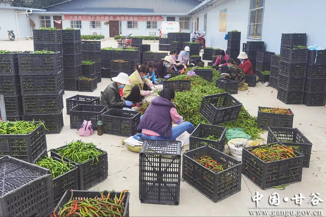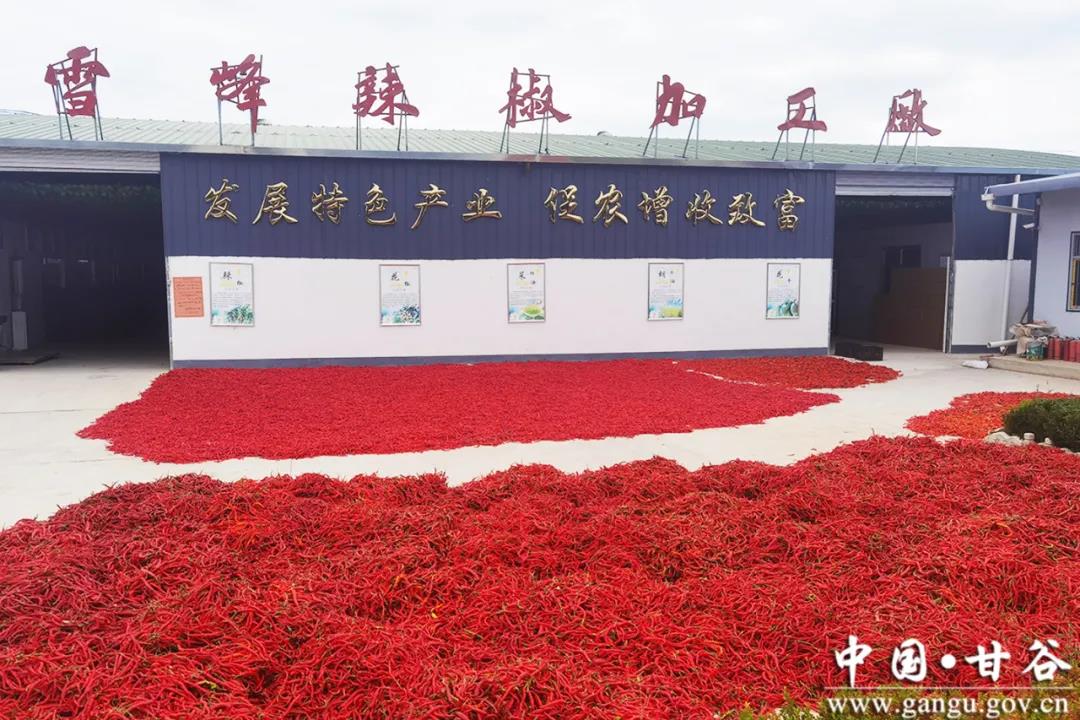 按照“黨建引領(lǐng),合作社帶動,農(nóng)戶參與”的共營模式,辣椒銷售以甘谷縣泓峰果業(yè)種植農(nóng)民專業(yè)合作社為載體,前期合作社與村集體簽訂收購合同,與農(nóng)戶簽訂辣椒保底收購協(xié)議,將豐收后的辣椒進行收購、加工和銷售,主要以辣椒的烘干、辣椒段、絲、面的加工和包裝為主,通過“832平臺”、直播、電商等渠道,直銷省內(nèi)外。