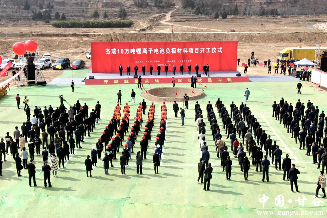 吳健說,杰瑞10萬噸鋰電池負(fù)極材料項(xiàng)目開工,是甘谷縣委、縣政府認(rèn)真貫徹落實(shí)“三新一高”要求、加快新能源產(chǎn)業(yè)發(fā)展的務(wù)實(shí)舉措,也是深入實(shí)施“強(qiáng)工業(yè)、強(qiáng)科技、強(qiáng)縣域”戰(zhàn)略、做足“五量”文章的具體行動(dòng),更是奮進(jìn)“建強(qiáng)副中心、走出新路子”目標(biāo)、壯大縣域經(jīng)濟(jì)實(shí)力的生動(dòng)實(shí)踐,對(duì)于推動(dòng)全縣工業(yè)轉(zhuǎn)型、優(yōu)化產(chǎn)業(yè)結(jié)構(gòu)、實(shí)現(xiàn)高質(zhì)量發(fā)展,具有重大而深遠(yuǎn)的里程碑意義。