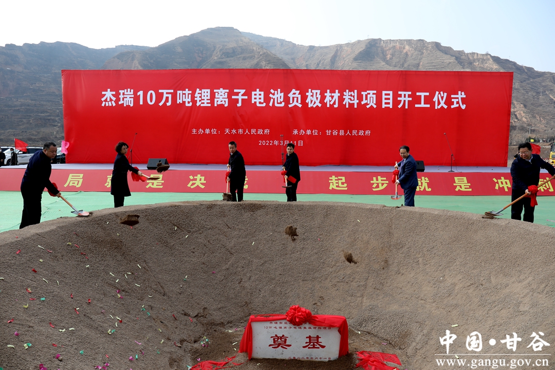 王坤曉在講話中指出,杰瑞10萬噸鋰電池負(fù)極材料項(xiàng)目在甘谷縣的開工建設(shè),既是杰瑞積極布局新能源產(chǎn)業(yè)戰(zhàn)略、在新能源領(lǐng)域切實(shí)深耕、加快發(fā)展的一大步,也是天水搶抓國家大力發(fā)展新能源新材料產(chǎn)業(yè)機(jī)遇,促進(jìn)產(chǎn)業(yè)結(jié)構(gòu)優(yōu)化升級(jí)、打造國家清潔能源產(chǎn)業(yè)高地的重要舉措。項(xiàng)目投產(chǎn)后,將帶動(dòng)周邊就業(yè),促進(jìn)當(dāng)?shù)亟?jīng)濟(jì)發(fā)展,為甘谷縣的新能源產(chǎn)業(yè)蓬勃發(fā)展壘土筑基、儲(chǔ)能聚力。為促進(jìn)天水市的經(jīng)濟(jì)結(jié)構(gòu)轉(zhuǎn)型升級(jí),助力國家實(shí)現(xiàn)“雙碳”戰(zhàn)略目標(biāo)作出更大貢獻(xiàn) 。