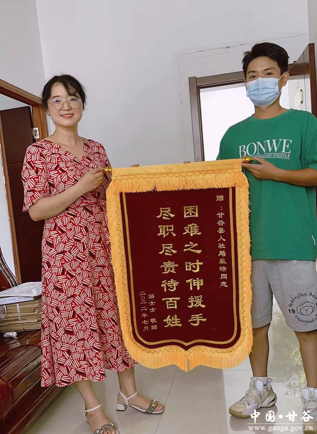3月7日上午10時許,裴皓再次接到該未就業(yè)高校畢業(yè)生電話,稱其已收到政審材料并已提交,對我們的工作特別滿意,并對工作人員表達了誠摯的謝意,并委托其親人前來甘谷縣人社局,為裴浩同志送上“困難之時伸援手,盡職盡責(zé)待百姓”的錦旗。