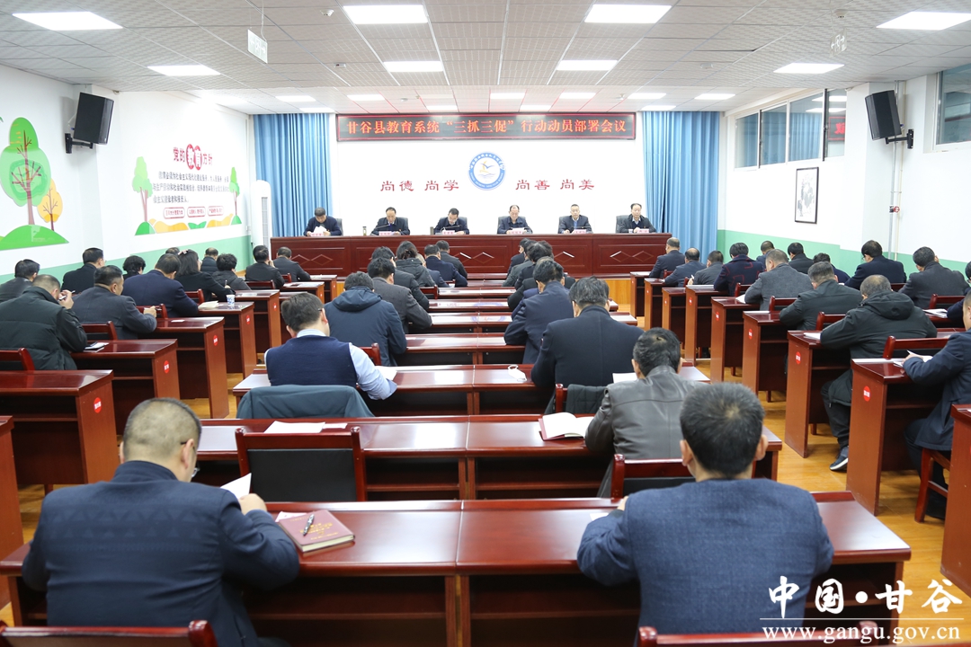 2月27日,甘谷縣教育局召開全縣教育系統(tǒng)“三抓三促”行動動員部署會議,深入貫徹黨的二十大精神和習(xí)近平總書記對甘肅重要講話重要指示批示精神,全面落實(shí)省市縣和市教育局“三抓三促”行動動員部署會議精神,動員部署全縣教育系統(tǒng)以更高站位、更強(qiáng)自覺、更高標(biāo)準(zhǔn)、更實(shí)舉措,在學(xué)習(xí)上下功夫、在執(zhí)行上鉚足勁、在效能上見真章,促進(jìn)廣大教育工作者切實(shí)轉(zhuǎn)變思想觀念、提升能力素質(zhì)、改進(jìn)工作作風(fēng)、提高效率效能,全面形成比學(xué)趕超、爭先進(jìn)位、勇創(chuàng)一流的教育良好局面,持續(xù)推動全縣教育事業(yè)高質(zhì)量發(fā)展。