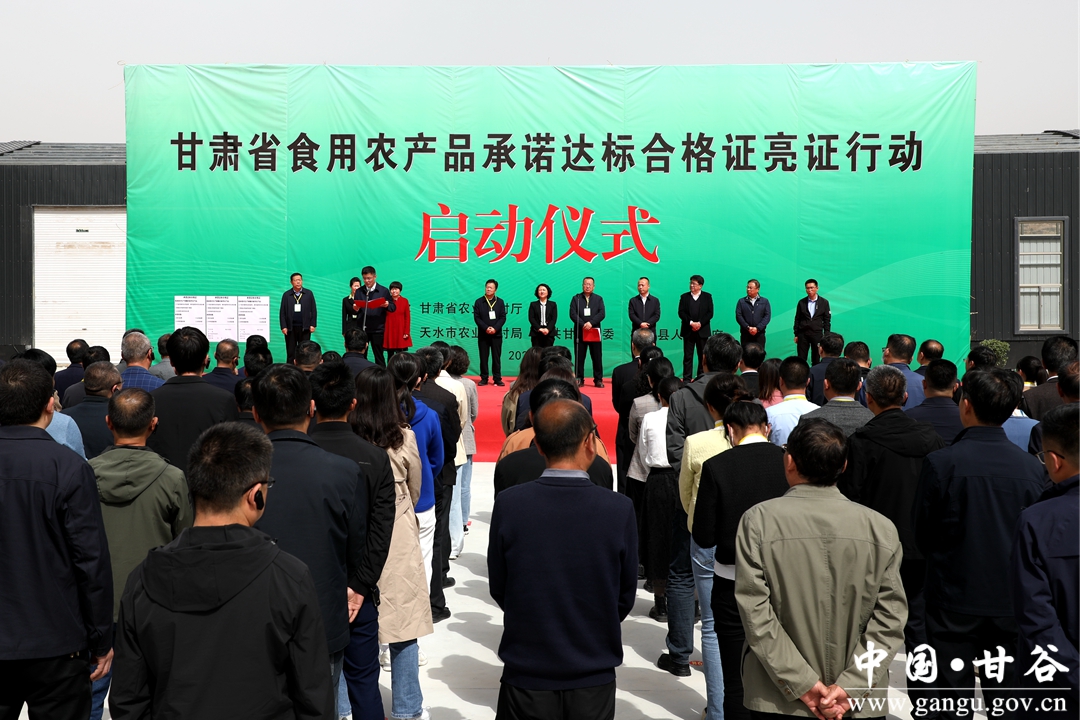 4月11日,甘肅省食用農(nóng)產(chǎn)品承諾達(dá)標(biāo)合格證亮證行動啟動儀式在甘谷縣舉行。省農(nóng)業(yè)農(nóng)村廳質(zhì)監(jiān)處處長范瑞雪宣布承諾達(dá)標(biāo)合格證亮證行動啟動。省農(nóng)產(chǎn)品質(zhì)檢中心主任李國林主持啟動儀式?h委副書記、縣長孫忠平致辭并介紹甘谷縣食用農(nóng)產(chǎn)品承諾達(dá)標(biāo)合格證推進(jìn)情況。甘肅隴上椒農(nóng)業(yè)科技有限公司負(fù)責(zé)人作承諾發(fā)言。省農(nóng)業(yè)農(nóng)村廳質(zhì)監(jiān)處、農(nóng)業(yè)綜合執(zhí)法局、種植業(yè)處、漁業(yè)局、省農(nóng)產(chǎn)品質(zhì)檢中心和省畜牧獸醫(yī)局相關(guān)同志,14個市州農(nóng)業(yè)農(nóng)村(畜牧獸醫(yī))局主管領(lǐng)導(dǎo)、質(zhì)監(jiān)科長、質(zhì)檢機構(gòu)負(fù)責(zé)同志參加啟動儀式。