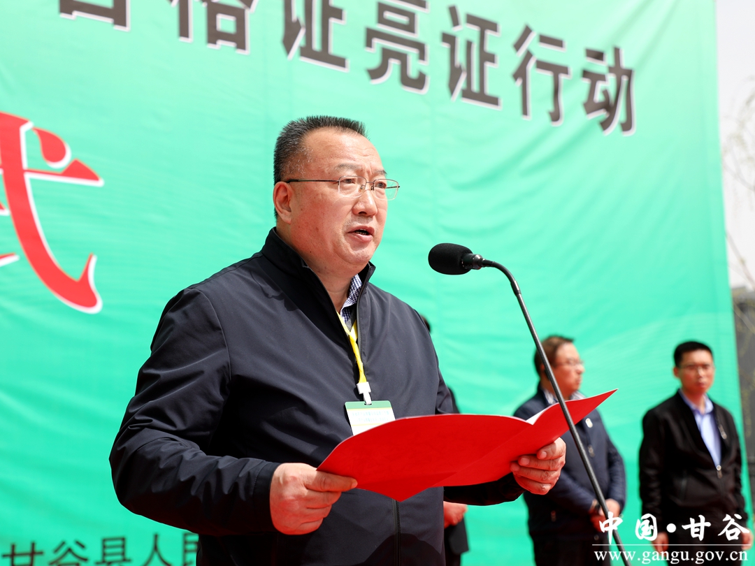 (縣委副書記、縣長孫忠平致辭并介紹甘谷縣食用農(nóng)產(chǎn)品承諾達(dá)標(biāo)合格證推進(jìn)情況)