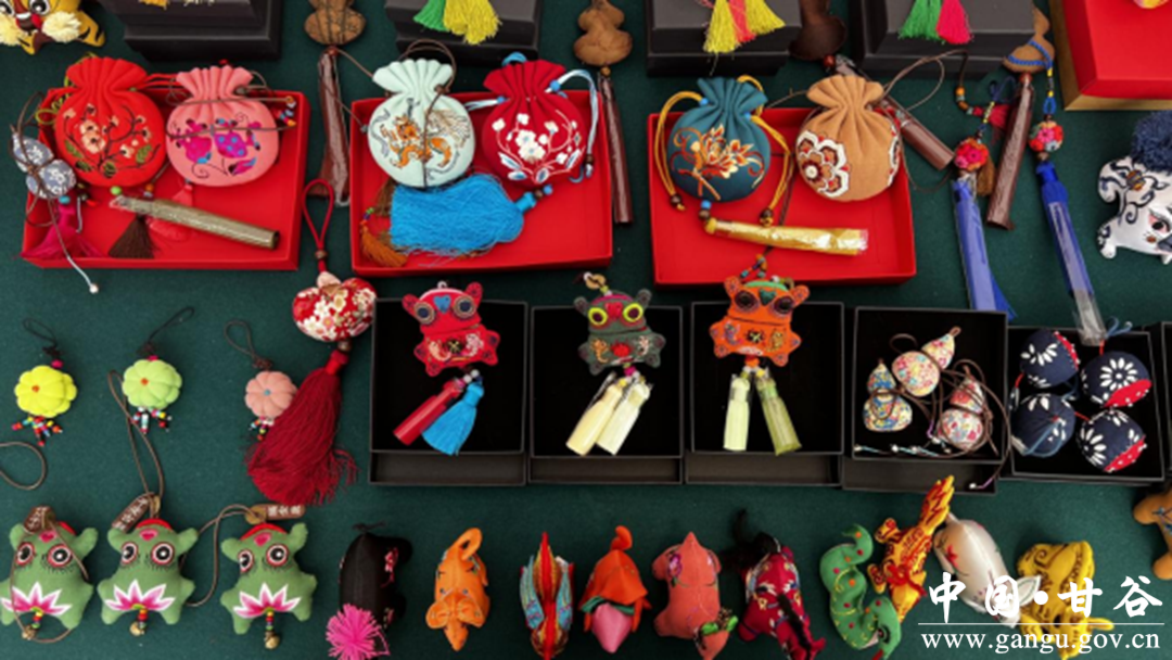 中國(guó)四大名硯之一的甘肅洮硯以其色澤碧綠、溫潤(rùn)細(xì)膩的特點(diǎn)而著名,作為國(guó)家級(jí)代表性傳承人盧鎖忠的兒子,盧廣成憑借在中央美院的學(xué)習(xí)功底,以現(xiàn)代明快的設(shè)計(jì)理念讓洮硯實(shí)現(xiàn)創(chuàng)造性轉(zhuǎn)化,打造了“文公子”洮硯系列產(chǎn)品,受到現(xiàn)場(chǎng)嘉賓和觀眾的青睞。慶陽(yáng)香包古拙質(zhì)樸、色彩濃郁,甘肅省級(jí)代表傳承人劉蘭芳將其傳統(tǒng)元素與國(guó)潮內(nèi)涵相結(jié)合,創(chuàng)作出“十二生肖”“虎頭帽”等古典與潮流并行的文創(chuàng)產(chǎn)品。作為劉蘭芳的兒子,慶陽(yáng)歧黃文化傳播有限公司負(fù)責(zé)人張煜琛頭戴“虎頭帽”,布展期間就被過(guò)往游客圍觀,買(mǎi)走了老虎枕頭、香包掛飾等產(chǎn)品。