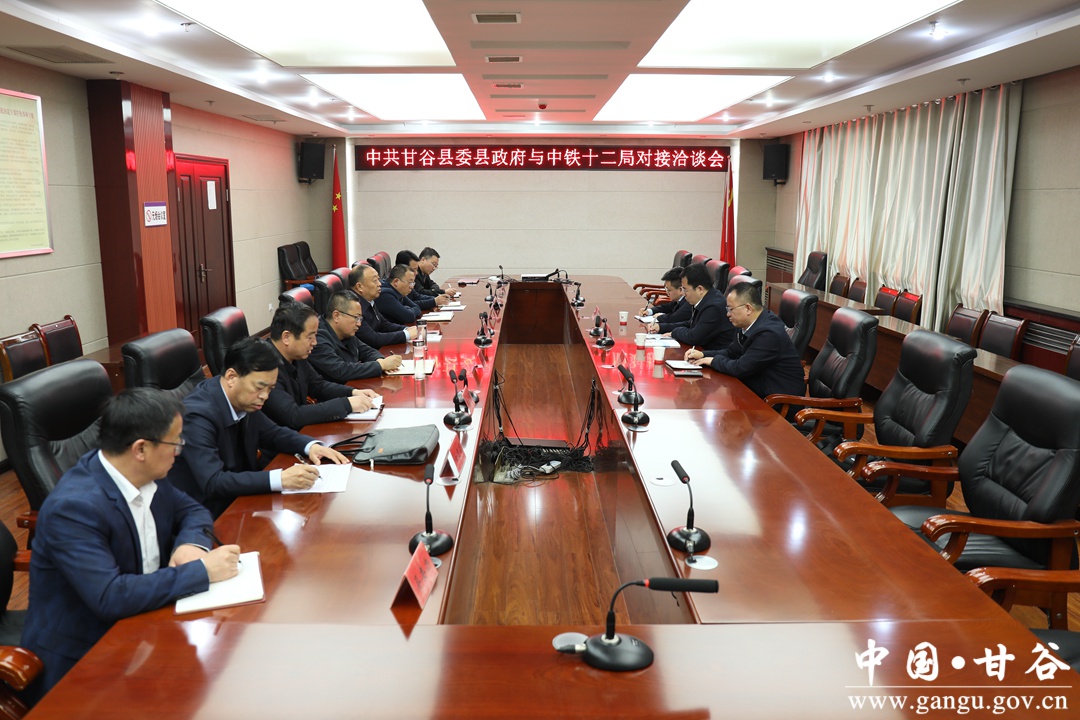 5月10日,中共甘谷縣委縣政府與中鐵十二局對接洽談會(huì)召開。中鐵十二局集團(tuán)陜甘指揮部總經(jīng)理張會(huì)峰,副總經(jīng)理張小斌、李波?h委書記吳健,縣委常委、副縣長李斌斌,縣委常委、政法委書記劉強(qiáng)出席洽談會(huì)。