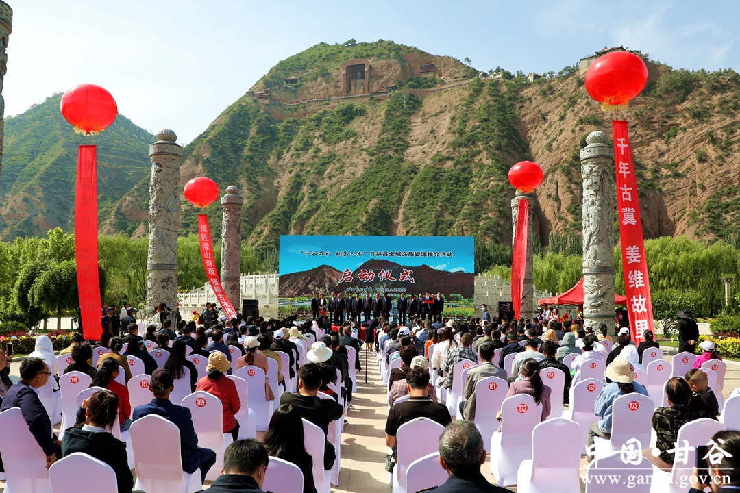 5月22日,“千山萬水 就愛天水”甘谷縣全域文旅資源推介活動啟動儀式在大像山文化公園舉行?h委書記吳健出席并宣布活動啟動、首批鄉(xiāng)村旅游大巴發(fā)車?h委副書記、縣長孫忠平致辭。縣委常委、副縣長李斌斌主持啟動儀式?h委常委、宣傳部部長范慧推介甘谷縣全域文旅資源和精品旅游路線。