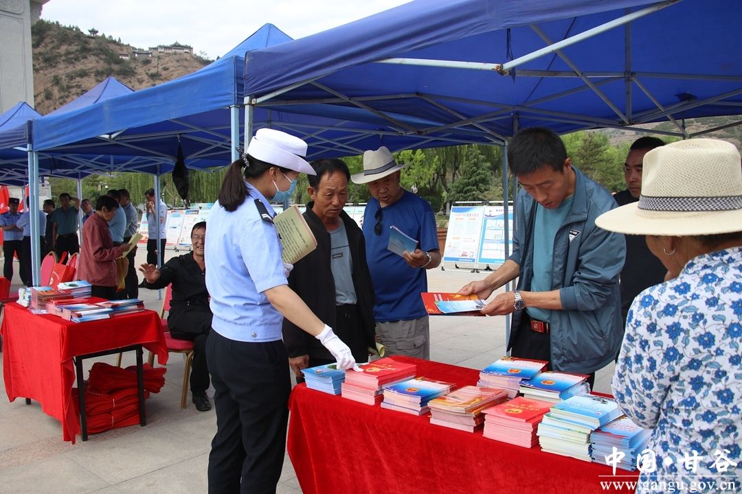 啟動儀式結束后,縣委政法委、縣法學會、團縣委、縣法院、縣檢察院、縣司法局等單位和志愿者們現(xiàn)場向群眾開展普法宣傳活動并免費發(fā)放《民法典》普法手冊,未成年人保護宣傳圖冊等資料。