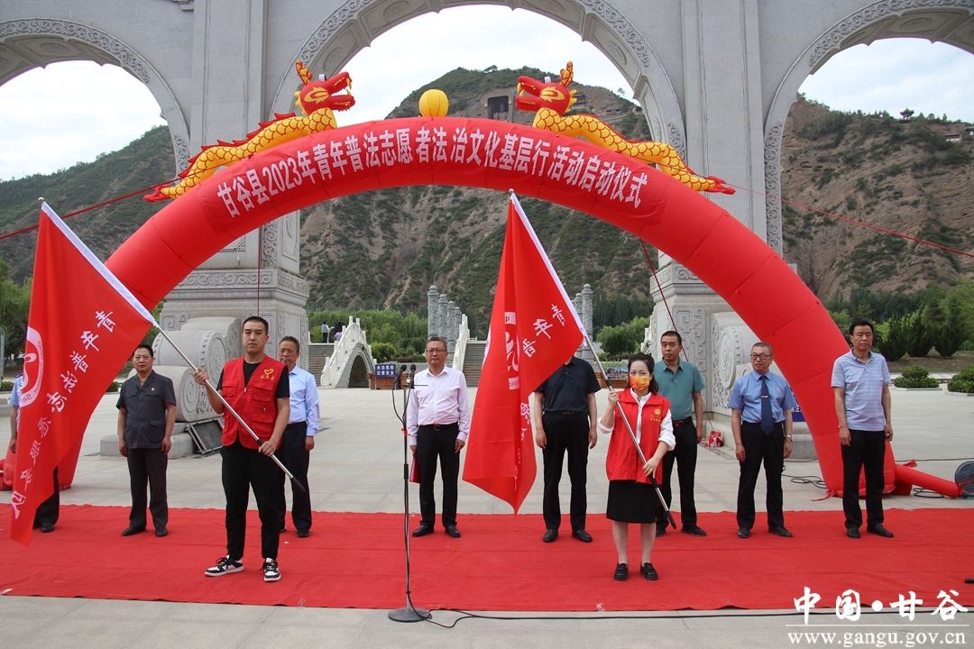 6月21日上午,縣委政法委、縣法學會、縣司法局、團縣委聯(lián)合大像山鎮(zhèn)等相關單位,在大像山公園舉行甘谷縣2023年“青年普法志愿者法治文化基層行”活動啟動儀式?h委常委、政法委書記劉強出席啟動儀式并講話?h人大常委會副主任張學斌、縣政協(xié)副主席郭有生向團縣委、大像山鎮(zhèn)普法志愿服務隊授旗。
