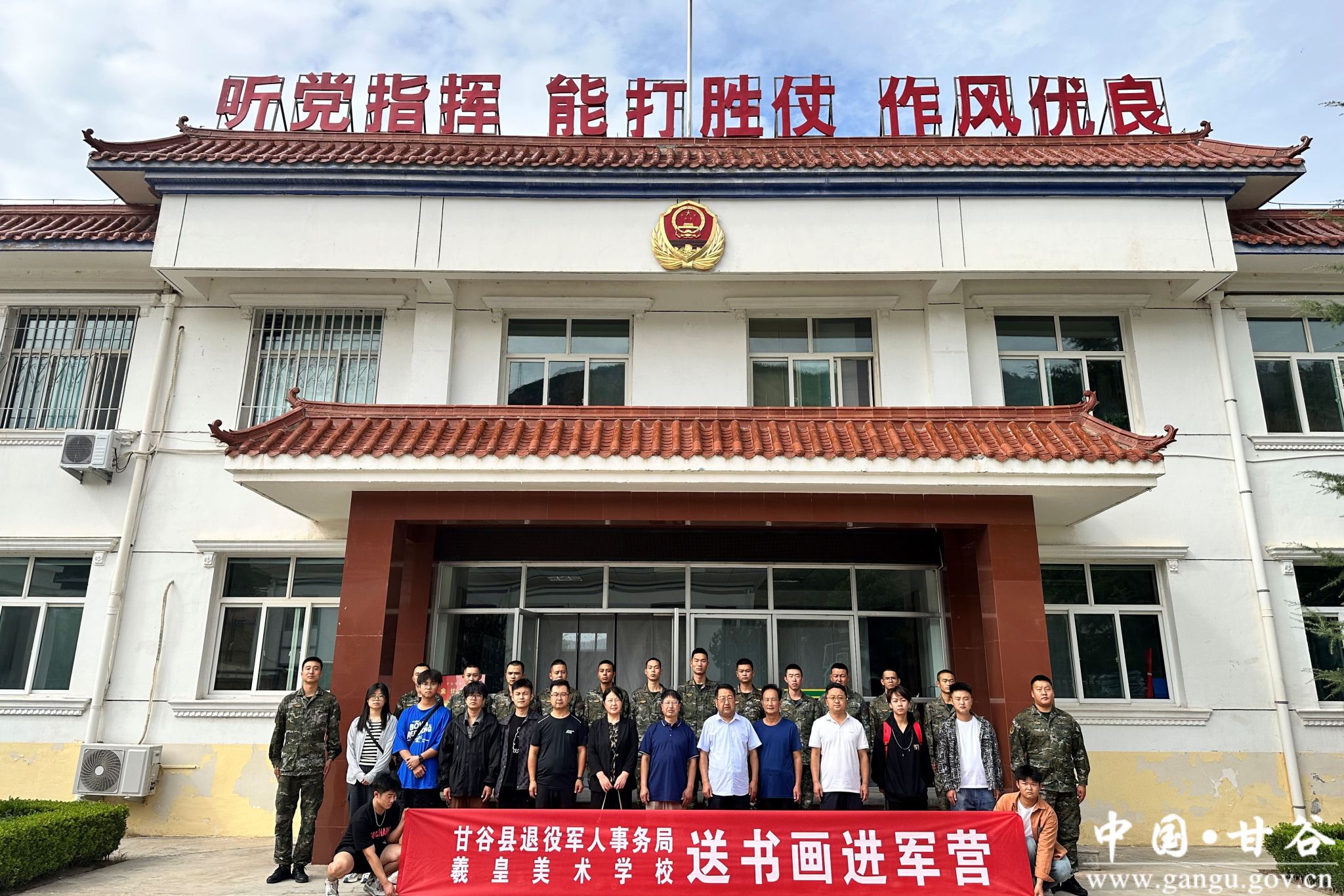 同日,縣退役軍人局聯(lián)合甘谷縣羲皇美術(shù)學(xué)校開展了送書畫進(jìn)軍營活動,書畫家們現(xiàn)場揮毫潑墨,激情創(chuàng)作,為武警甘谷縣中隊和退役老兵贈送了書畫作品,送上了美好祝福。
