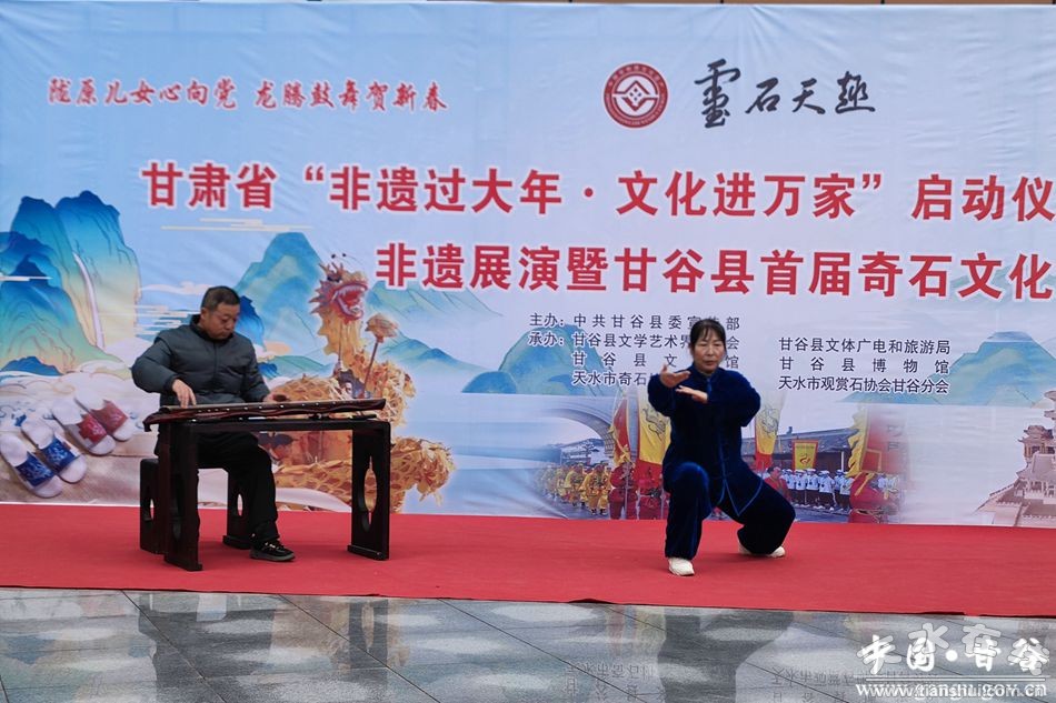 新甘谷訊【記者 頡鳳】 1月20日,甘肅省“非遺過大年·文化進萬家”啟動儀式甘谷分會場非遺展演暨甘谷縣首屆奇石文化展在甘谷縣博物館啟動。