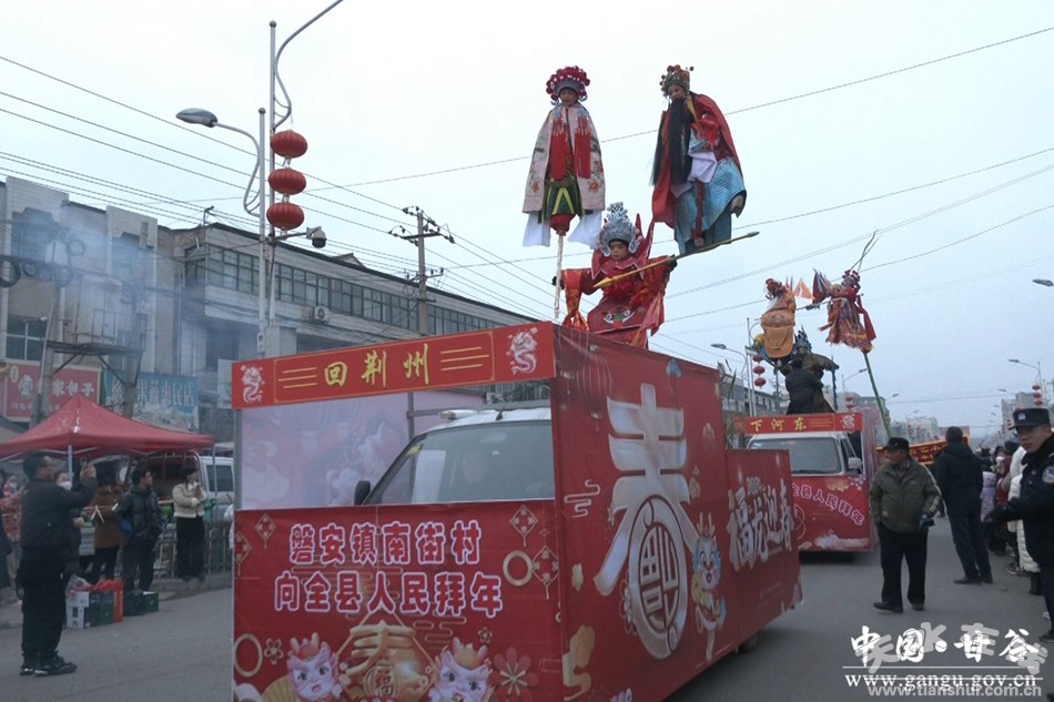 新甘谷訊【記者王永吉?jiǎng)⒘翉埼牡贤趺阑荨?月22日,磐安鎮(zhèn)春節(jié)社火匯演熱鬧開(kāi)啟,來(lái)自全鎮(zhèn)各社區(qū)、村委等單位的彩車和民間社火隊(duì),用精彩絕倫的社火表演給廣大群眾送上了一場(chǎng)豐富的新春文化盛宴,吸引眾多游客前來(lái)觀看。