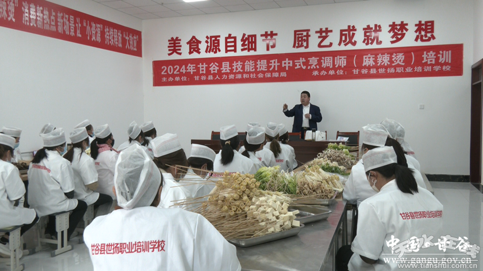 新甘谷訊【記者趙小勇】隨著天水麻辣燙火爆全網(wǎng),為了讓更多餐飲創(chuàng)業(yè)者能學(xué)到制作麻辣燙的技能,盡快搭乘天水麻辣燙的順風(fēng)車,實(shí)現(xiàn)增收。3月29日,甘谷縣人社局組織甘谷縣世揚(yáng)職業(yè)培訓(xùn)學(xué)校在甘谷縣公共實(shí)訓(xùn)基地舉辦2024年甘谷縣技能提升中式烹調(diào)師(麻辣燙)培訓(xùn)。