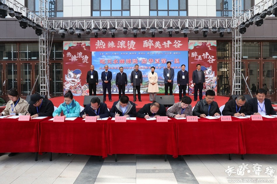 啟動(dòng)儀式上,秦州區(qū)玉泉觀景區(qū)、南山景區(qū)、武山縣水簾洞景區(qū)、隴西縣隴西堂景區(qū)、渭源縣渭河源景區(qū)、首陽(yáng)山景區(qū)、元古堆景區(qū)、漳縣貴清山景區(qū)、遮陽(yáng)山景區(qū)、甘谷縣大像山景區(qū)負(fù)責(zé)人簽訂“牽手”互通協(xié)議書(shū)。