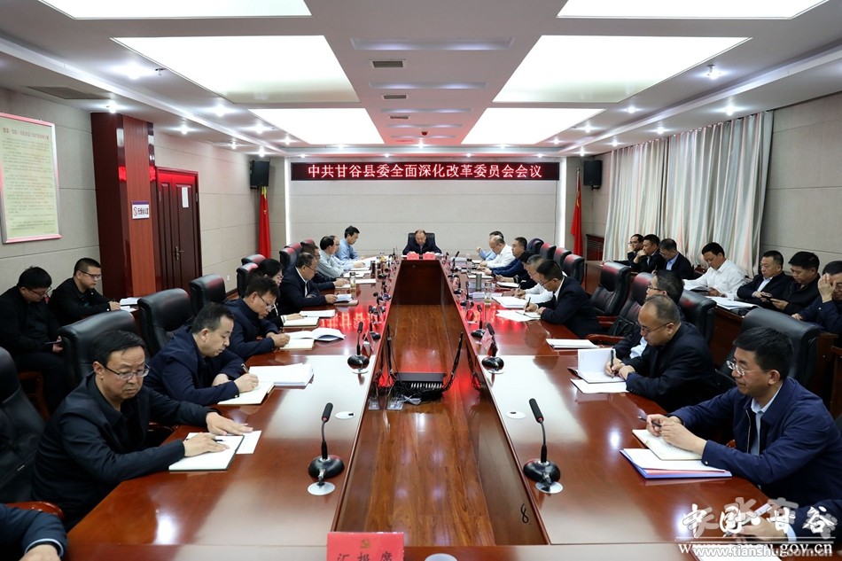新甘谷訊【記者謝映波】4月17日,縣委書記、縣委全面深化改革委員會主任吳健主持召開中共甘谷縣委全面深化改革委員會會議。傳達(dá)學(xué)習(xí)中央全面深化改革委員會第四次會議、省委全面深化改革委員會第五次會議、市委全面深化改革委員會第九次會議精神,審議縣委全面深化改革委員會2024年《工作要點(diǎn)》和《工作臺賬》,研究部署2024年的全面深化改革重點(diǎn)工作。