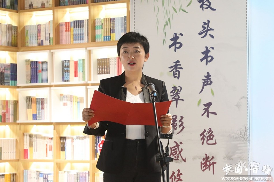 范慧在致辭中提到,甘谷兒女歷來把“詩書傳家”作為家訓家規(guī),涵育了崇文尚賢的淳樸民風。近年來,全縣上下堅持新時代文明實踐引領,開展了一系列主題鮮明、內(nèi)容豐富、形式多樣的全民閱讀活動,多讀、善讀意識逐步增強,樂讀、好讀氛圍日益濃厚。希望各級各部門以本次閱讀分享活動為契機,全面學習習近平總書記的讀書觀,推動全民閱讀向縱深發(fā)展,不斷提升縣域文化軟實力;也希望各新時代文明實踐所、站、基地不斷加強隊伍建設、挖掘平臺潛能、拓展服務內(nèi)容,實現(xiàn)全民閱讀與文明實踐的有機融合;更希望廣大干部群眾養(yǎng)成每天讀書的好習慣,用書香傳遞文明、涵養(yǎng)人生,培育家風、引領風尚,攜手在全縣掀起新一輪讀書熱潮,為譜寫中國式現(xiàn)代化“甘谷篇章”凝聚更加澎湃的精神動力。