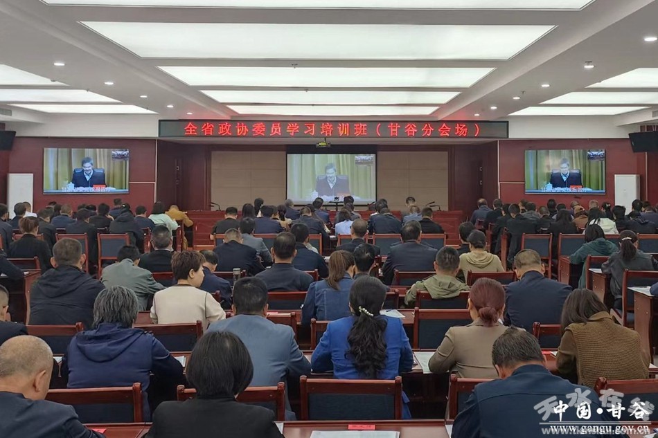 學(xué)習(xí)培訓(xùn)班在各市州、縣區(qū)設(shè)分會場?h政協(xié)黨組書記、主席令軍強,縣政協(xié)副主席馬清平、魏杰、郭有生、李文定、張菊蓮及全體政協(xié)委員、政協(xié)機關(guān)干部在甘谷分會場參加培訓(xùn)。