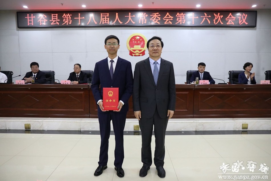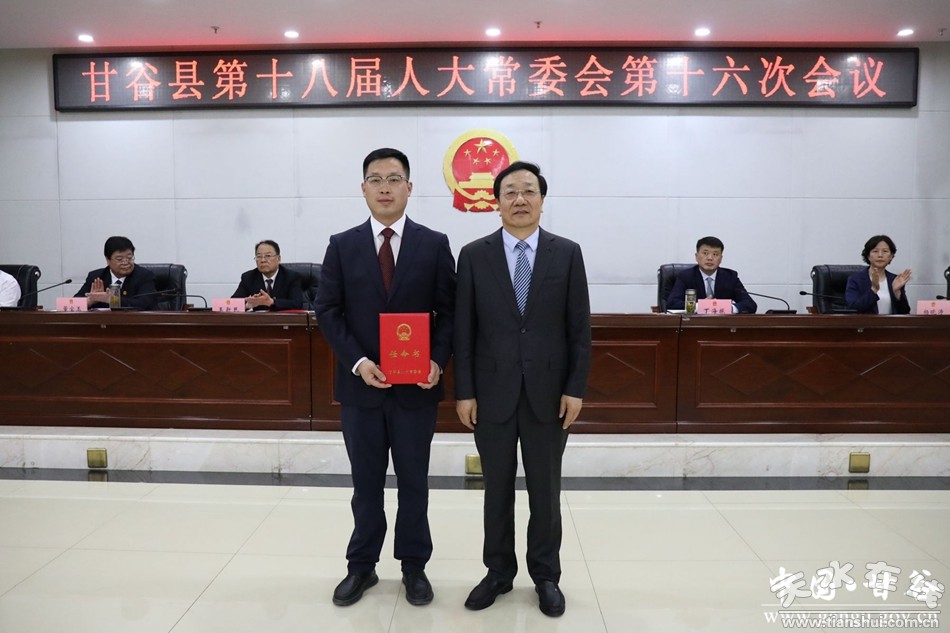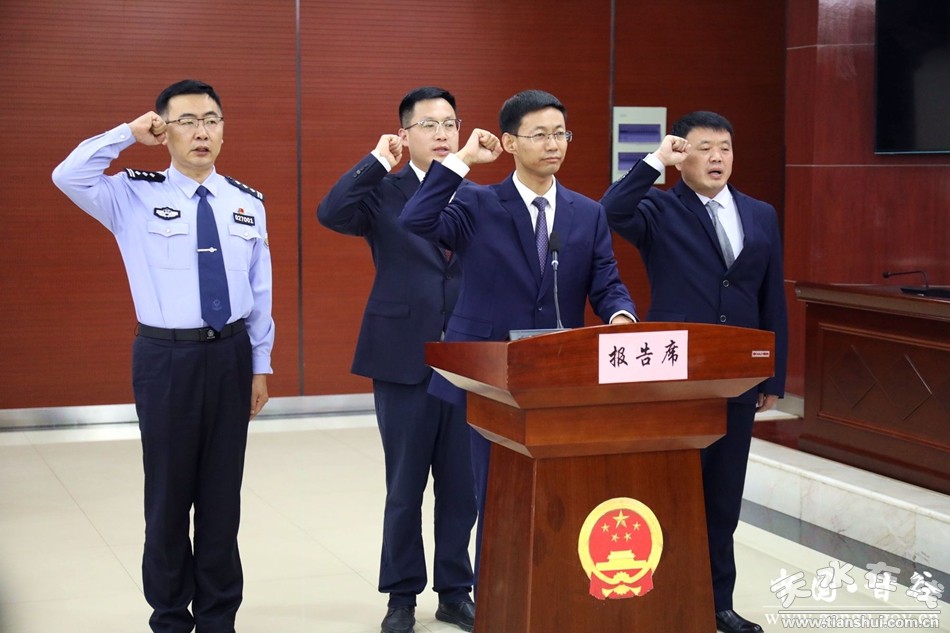 新當選的甘谷縣人民政府副縣長高文、丁海振、楊亮,縣公安局局長李羽飛進行了集體宣誓。