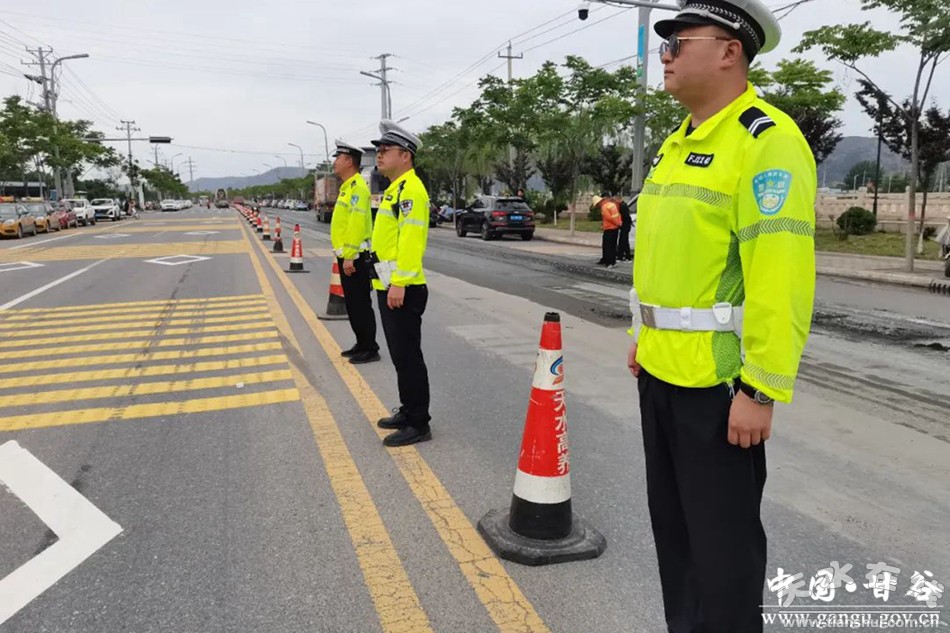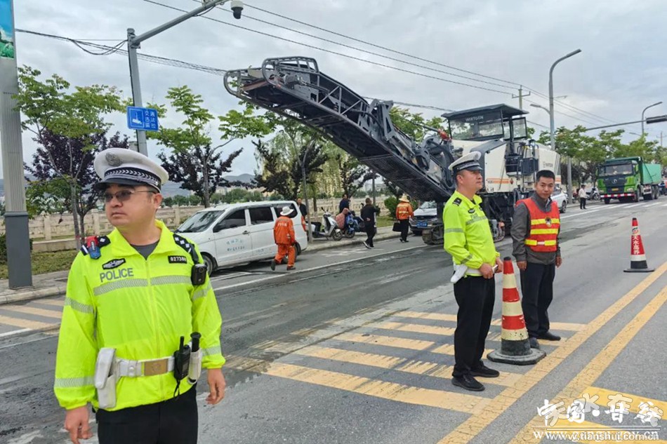 新甘谷訊 高考來臨之際,為做好考點考前道路交通安全隱患治理工作,6月1日下午,甘谷縣公安局交警大隊積極協(xié)調(diào)甘谷公路段調(diào)用上級部門大型銑刨機,鏟除甘谷六中考點路面拱起車轍嚴(yán)重交通安全隱患,并聯(lián)合甘谷六中共同加強學(xué)校師生安全宣傳引導(dǎo),為高考備考保駕護(hù)航。